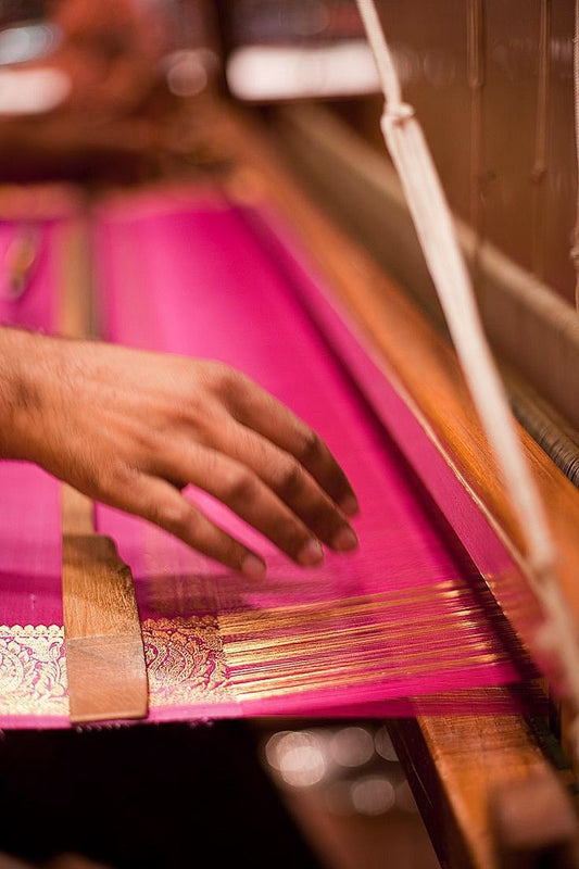It begins with the fabric: each thread is chosen with care, every weave considered for time-honoured texture and subtle movement. We honour the rich tapestry of Indian craftsmanship — hand-loomed silks, organic cottons, natural dyes, and artisan skills passed from one generation to the next.